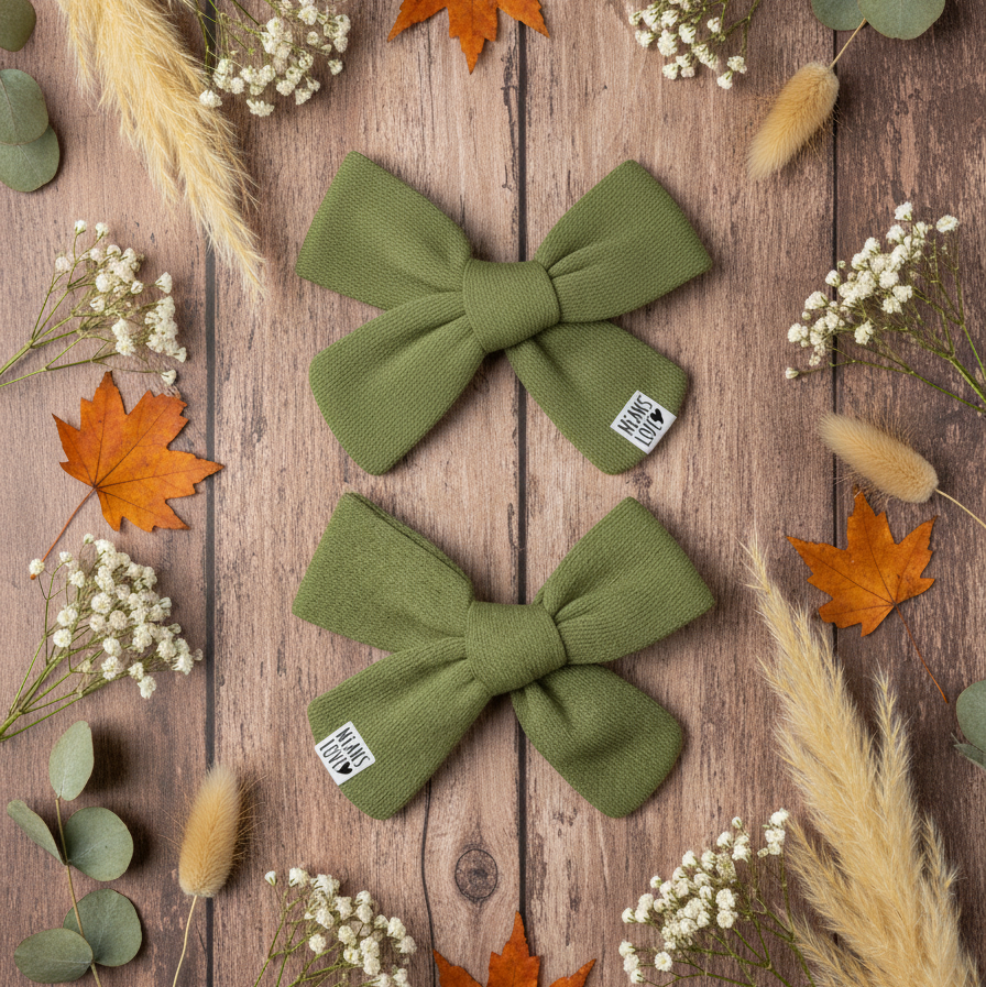 Par de Presilhas de Cabelo Infantil - Algodão Stretch Liso | Oliva Natural