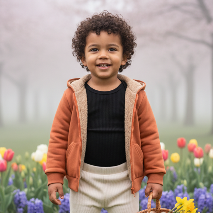 • Conforto em Cada Detalhe: Com capuz e forro cobrindo toda a parte interna, a jaqueta protege e envolve seu bebê como um abraço carinhoso, conferindo segurança e calor mesmo nos dias mais frios.