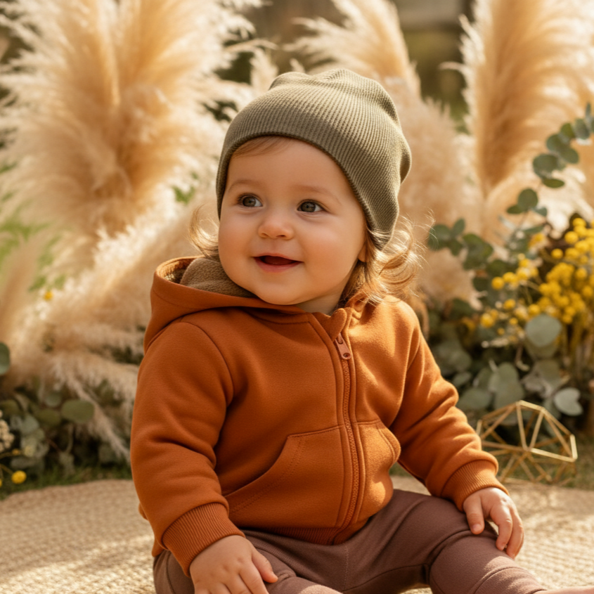 Jaqueta Bebê/Infantil Com Capuz e Forro Peluciado Grosso Areia Claro | Cor Externa Laranja Queimado