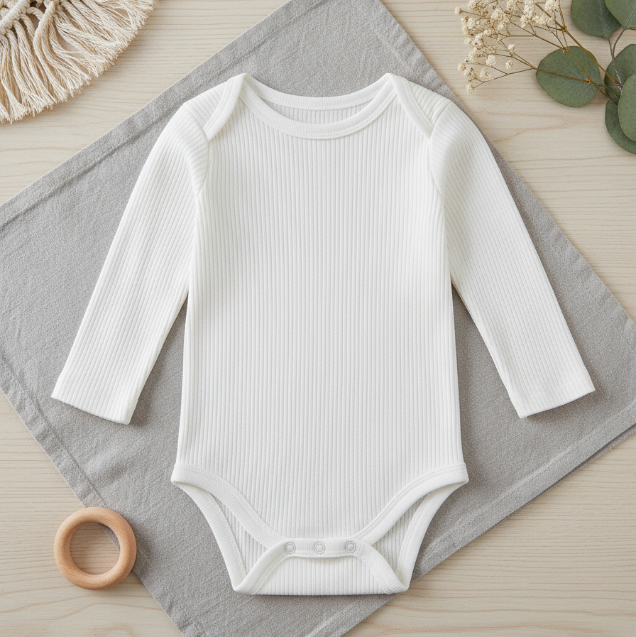 Body Bebê e Infantil Unissex Manga Longa – Canelado Premium Liso | Branco