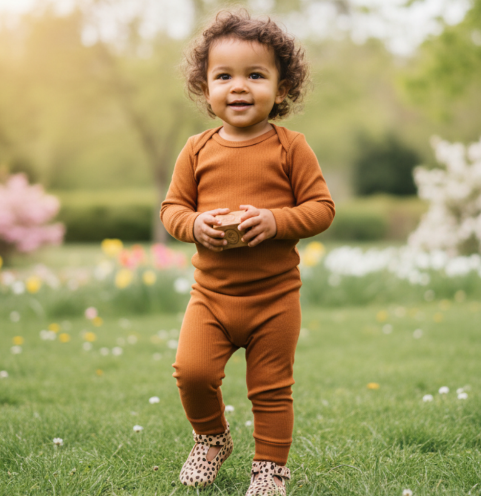 Body Bebê e Infantil Manga Longa Unissex – Algodão Canelado Premium Liso | Caramelo