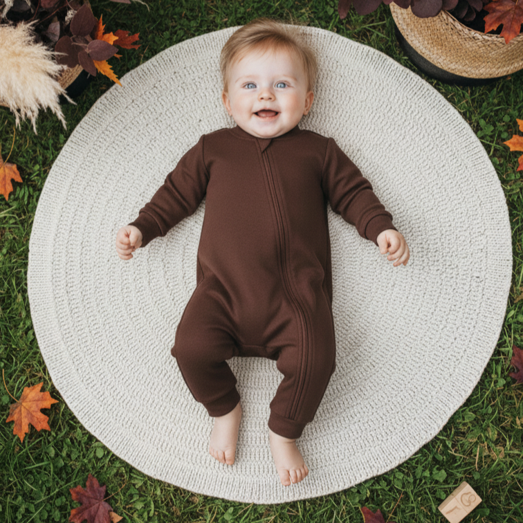 Macacão Bebê Com Zíper Frontal Unissex – Algodão Premium Liso | Marrom Café