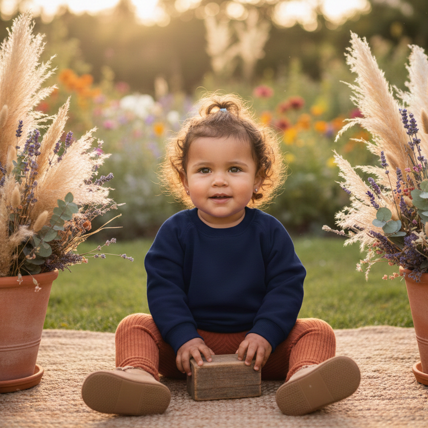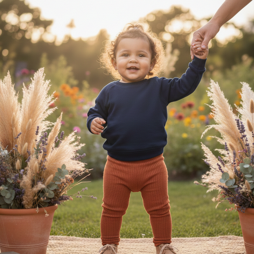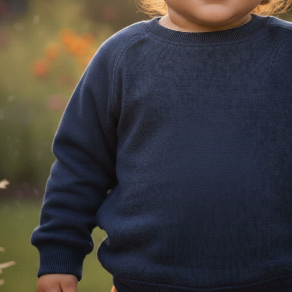 Este moletinho unissex na cor marinho é uma peça curinga para o guarda-roupa dos pequenos — minimalista, macio e com o toque acolhedor que só um moletom bem-feito pode oferecer.