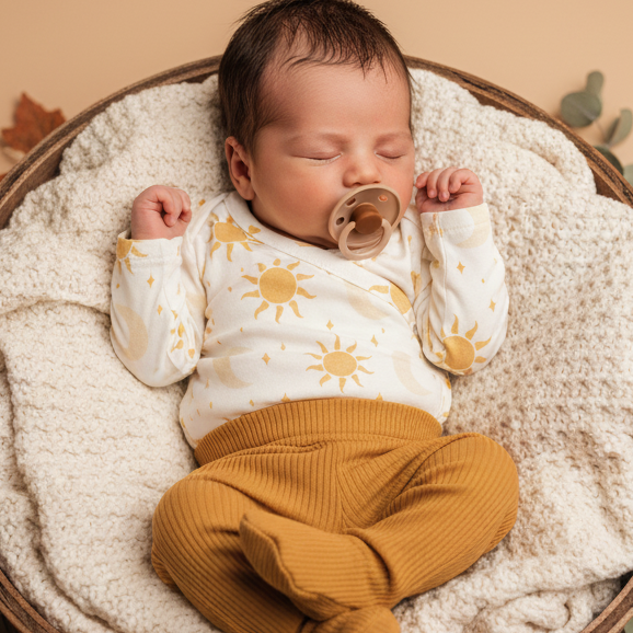 A estampa exclusiva Sol e Lua, criada com tons suaves e estética celestial minimalista, representa o ciclo dos dias e noites que marcam o início das memórias afetivas com seu bebê — um convite para viver cada instante com presença e propósito.