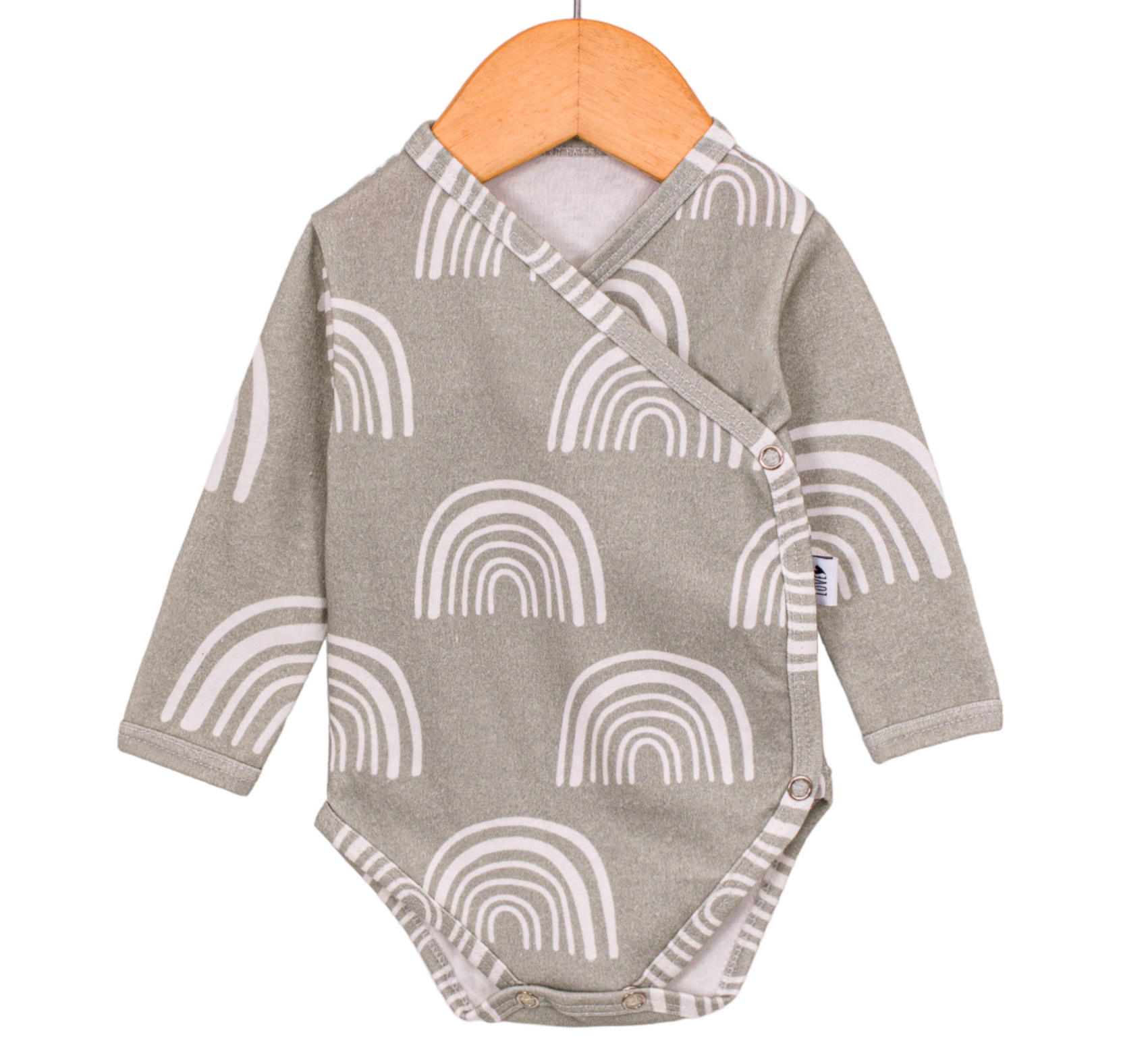 Body Kimono Bebê Recém-Nascido à 3 Meses Unissex - Algodão Premium Estampa Exclusiva | Grey Rainbow