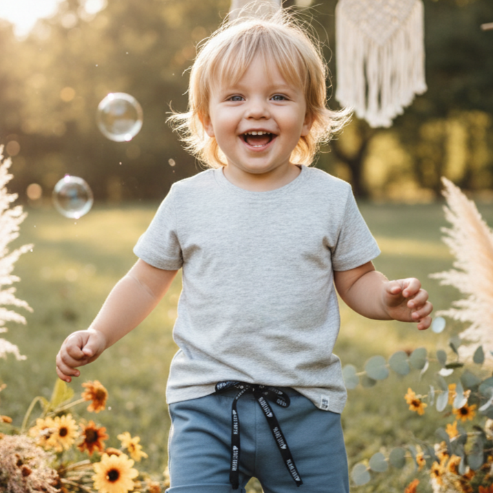 Camiseta Bebê/Infantil Manga Curta Unissex - Malha PA | Cinza Mescla Banana