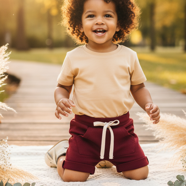 Bermuda Bebê/Infantil Menino – Algodão Stretch Premium Liso | Merlot
