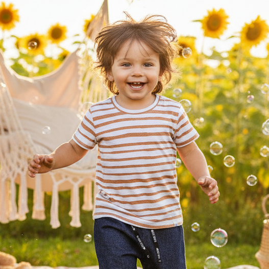 Camiseta Bebê e Infantil Manga Curta Unissex - Meia Malha 100% Algodão Premium Estampa Exclusiva | Listras Amarelas