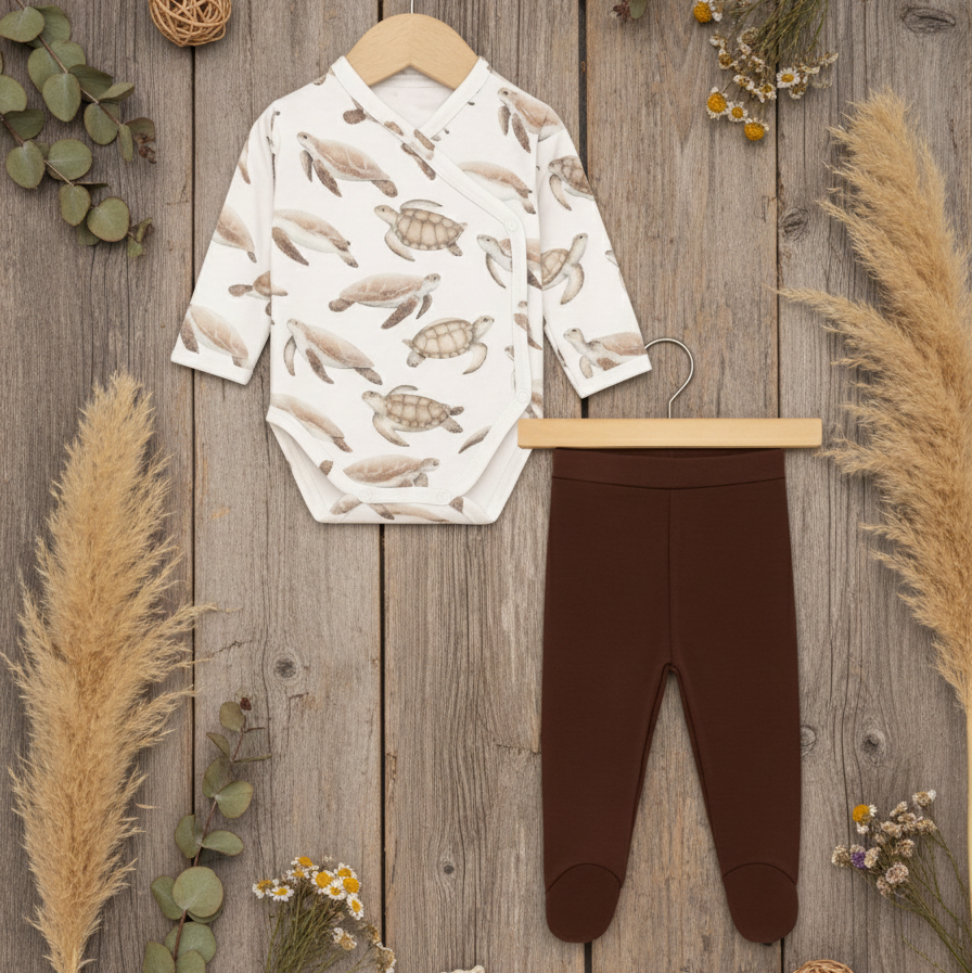Body Kimono Manga Longa – Algodão Premium Estampa Exclusiva | Tartarugas Aquareladas