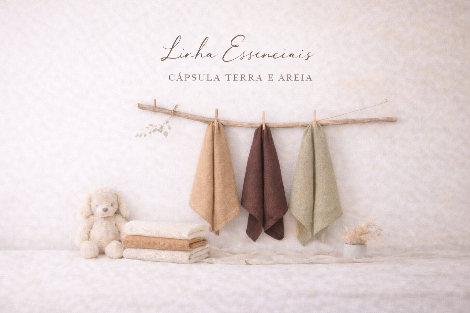 Uma curadoria minimalista inspirada na organicidade da natureza, unindo o toque macio do algodão às texturas terrosas. A Cápsula Terra & Areia celebra o essencial através de uma paleta atemporal e acolhedora.