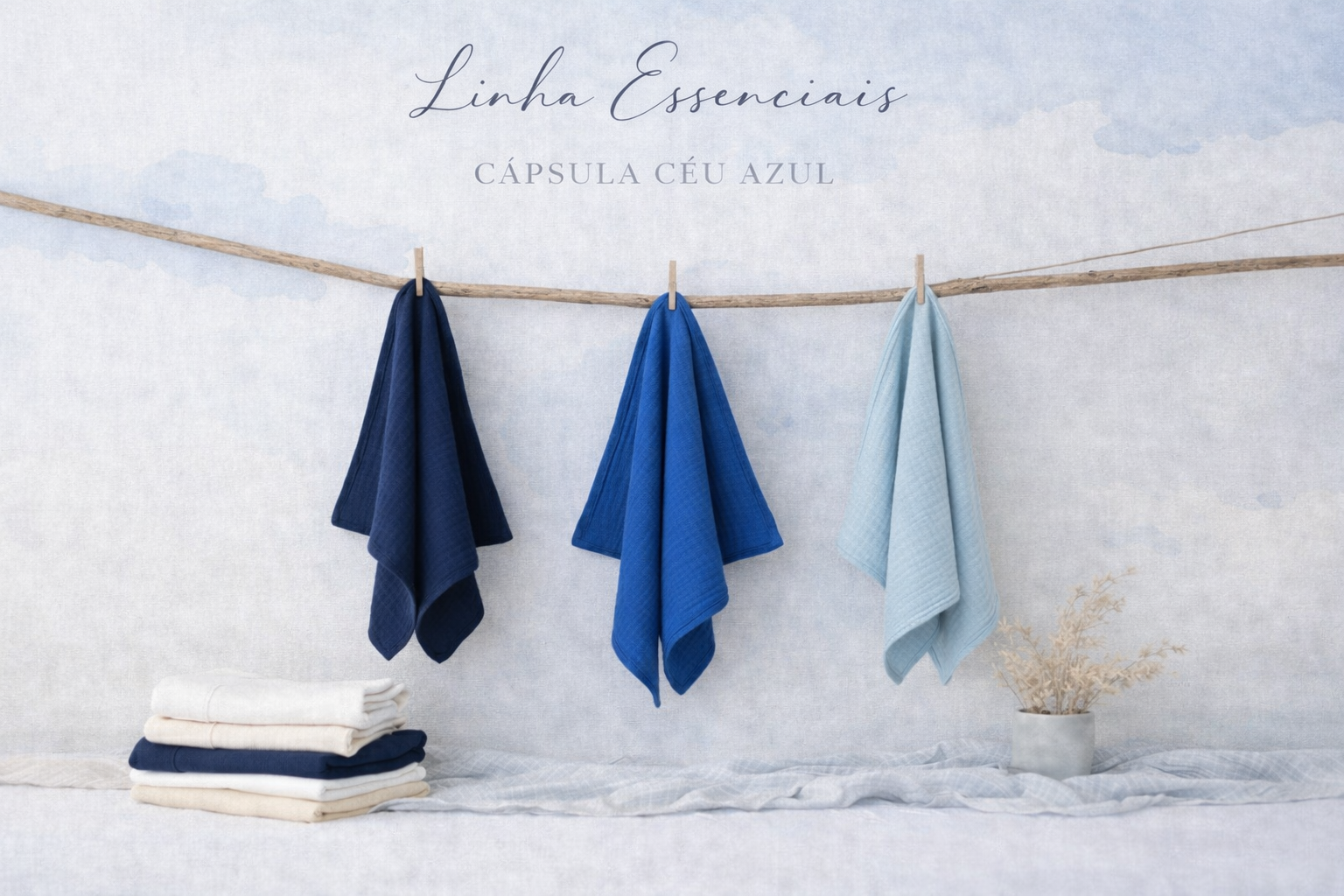 Uma imensidão de tons, do azul mais suave ao profundo marinho, que transmitem calma e serenidade. Peças versáteis que refletem a tranquilidade de um horizonte infinito em cada detalhe.