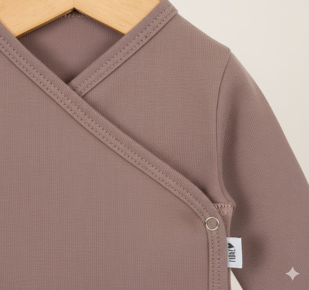 Com fechamento lateral tipo envelope, ele respeita o tempo do bebê e facilita a troca sem movimentos bruscos, sem passar pela cabeça — porque conforto, nessa fase, é tudo.