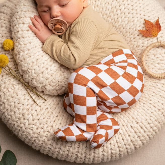 Calça Recém-Nascido com Pezinho Unissex – Algodão Premium Estampa Exclusiva | Plaid