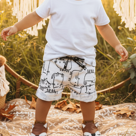 Bermuda Bebê e Infantil Menino – Malha Algodão Estampada | Gatinhos Minimalistas
