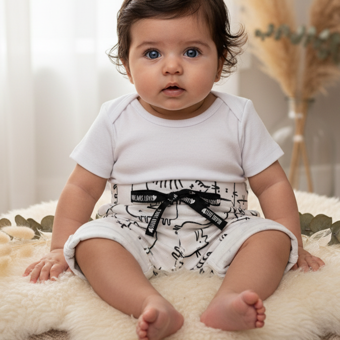 A bermuda infantil da Means Love Baby foi desenvolvida para quem busca unir sofisticação, praticidade e o charme único da moda minimalista de luxo.
