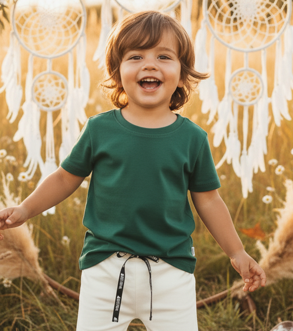Camiseta Bebê/Infantil Manga Curta Unissex - Malha Algodão Lisa | Verde Murano