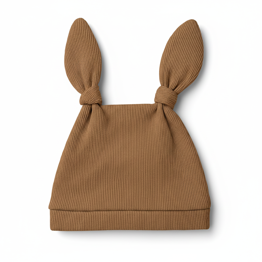 Touca Bebê Orelhinhas Regulável - Canelado Premium Liso | Marrom Claro