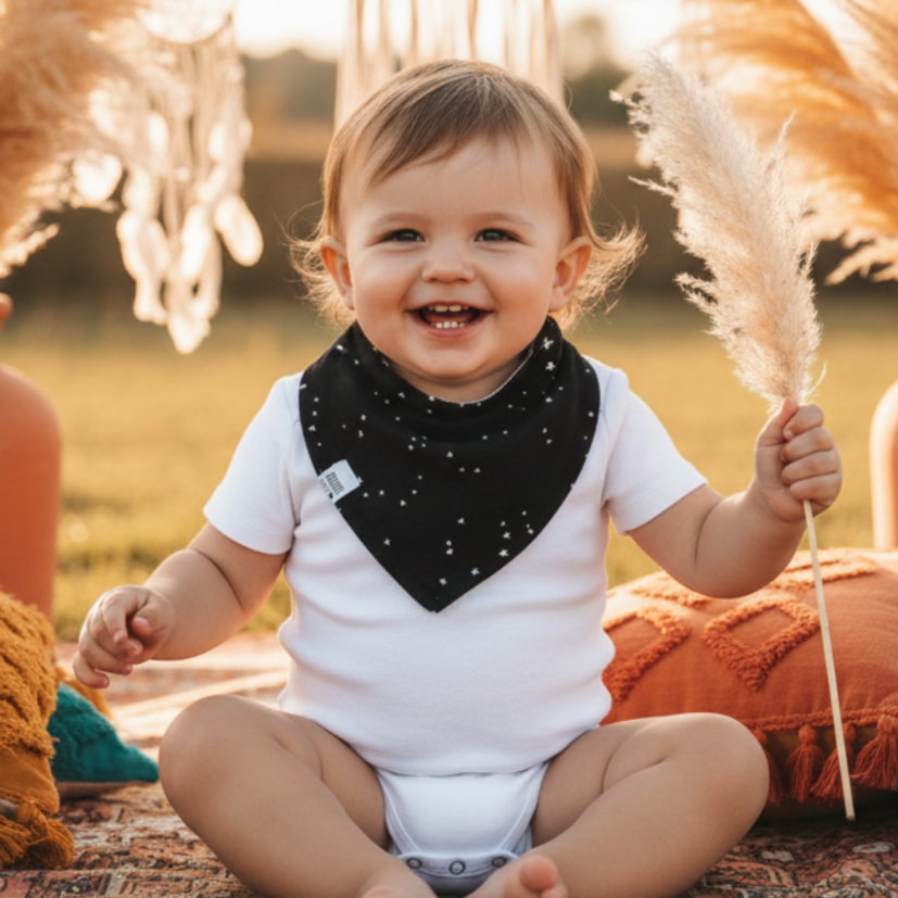 Bandana Babador Bebê Unissex – Malha Algodão Estampa Exclusiva | Céu Estrelado