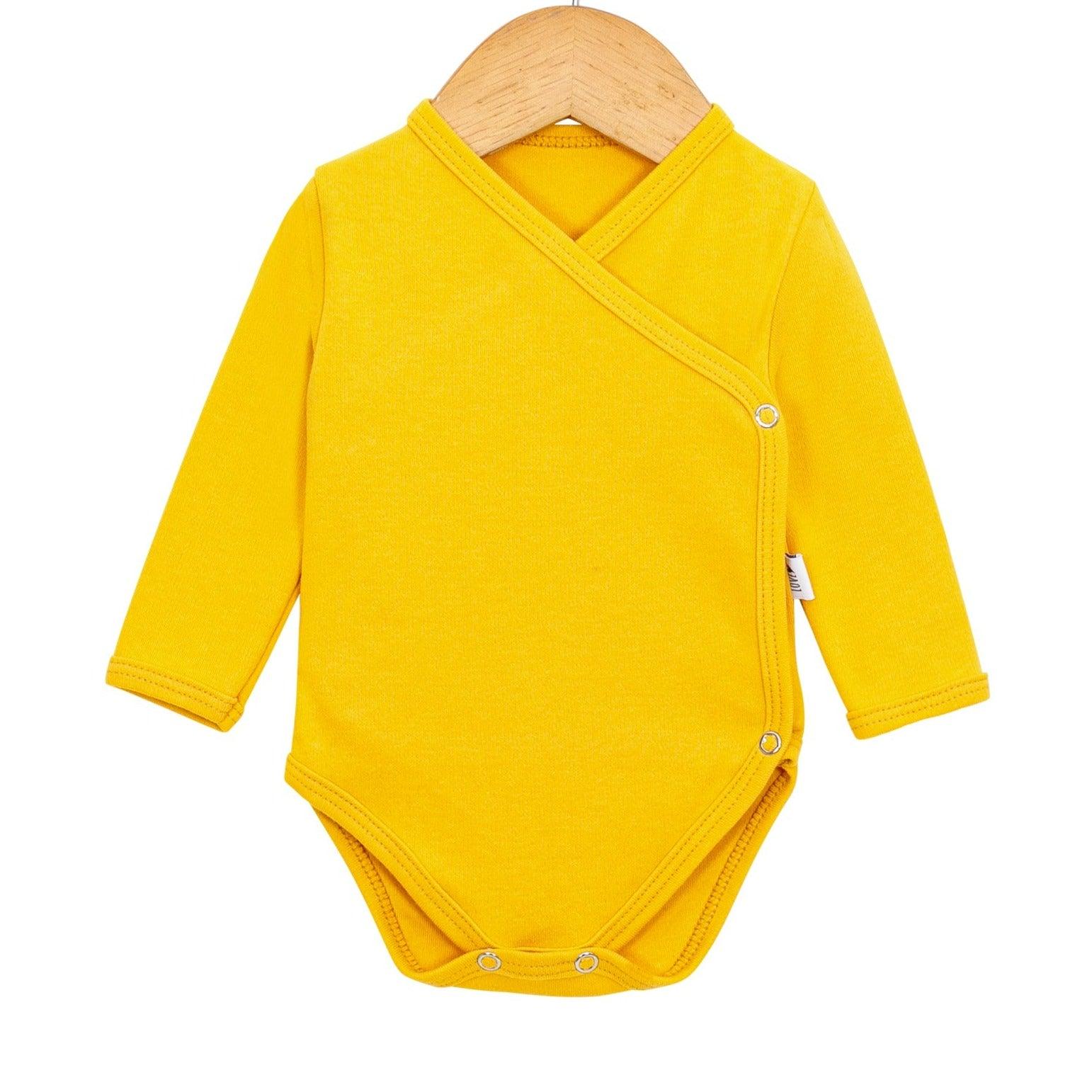 Body Kimono Bebê Recém-Nascido à 3 Meses Unissex - Algodão Premium Liso | Amarelo Vibrante