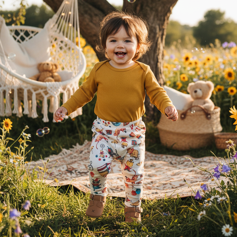 Calça Bebê/Infantil Bolso Canguru Unissex – Malha Algodão Estampada | Circo Vintage