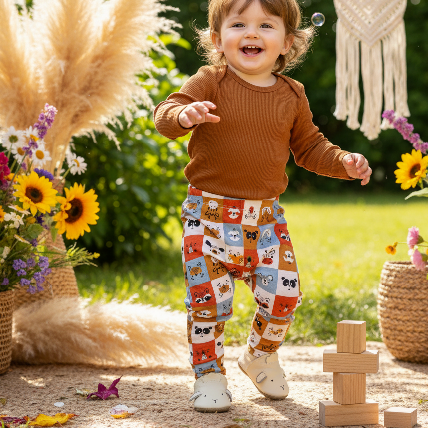 Calça Bebê/Infantil com Bolsão Unissex – Malha Algodão Estampada | Plaid Colorido