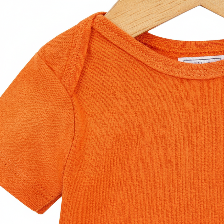 O Body Bebê/Infantil Manga Curta Unissex em Algodão Premium Liso | Laranja é a tradução perfeita de minimalismo sofisticado na moda infantil. Criado em tecido de algodão premium macio e respirável, garante conforto absoluto para a pele delicada do bebê, sem abrir mão da elegância.